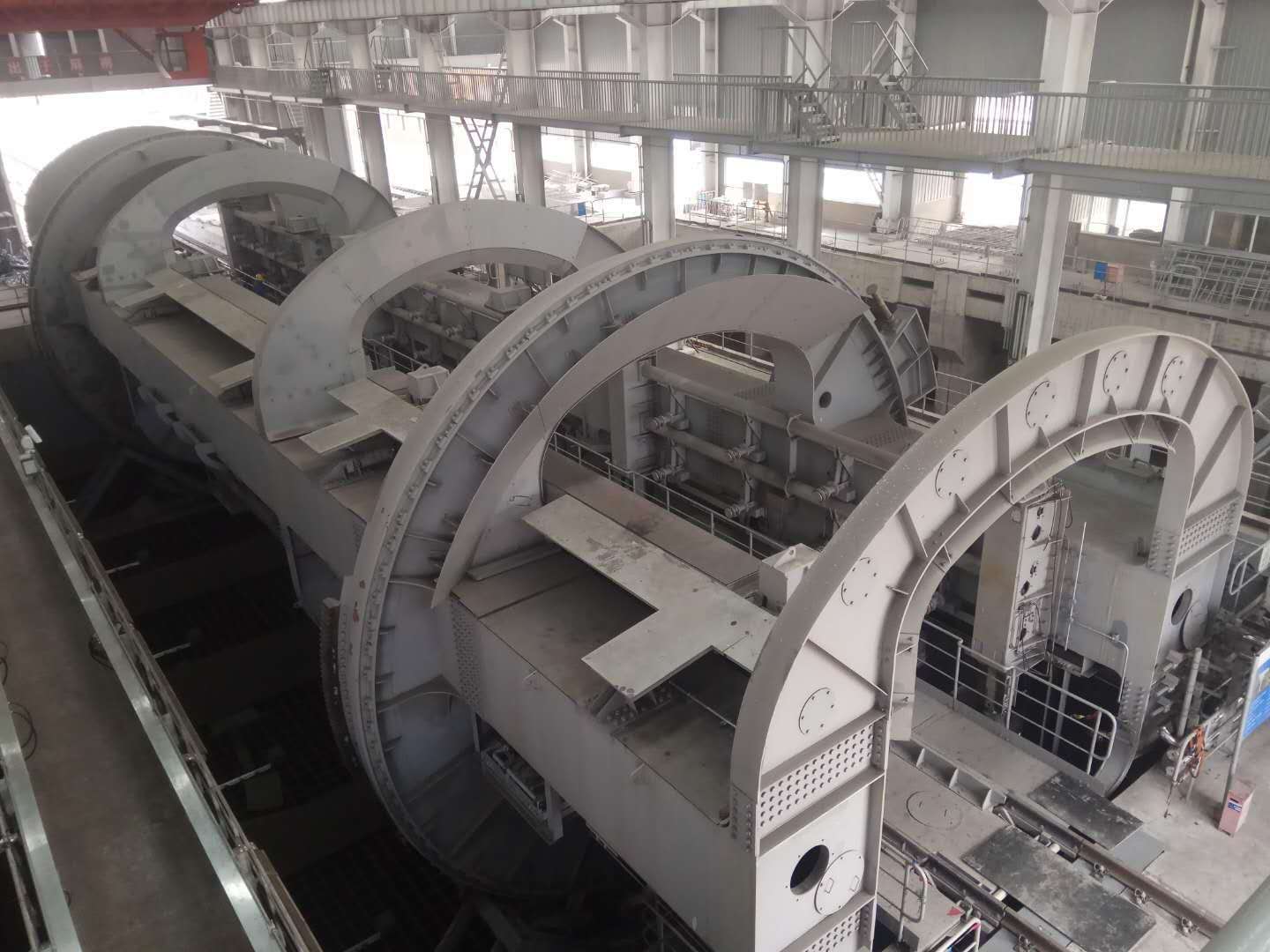 圓堆取料機是圓形煤場堆取料機的簡稱,圓形煤場所使用的圓堆取料機被半球形的煤棚所籠罩,堆取料作業時集中于定心旋轉的回轉范圍內,不受臺風等惡劣天氣的影響,同時產生的揚塵范圍小,又被拘囿再固定的區域內。